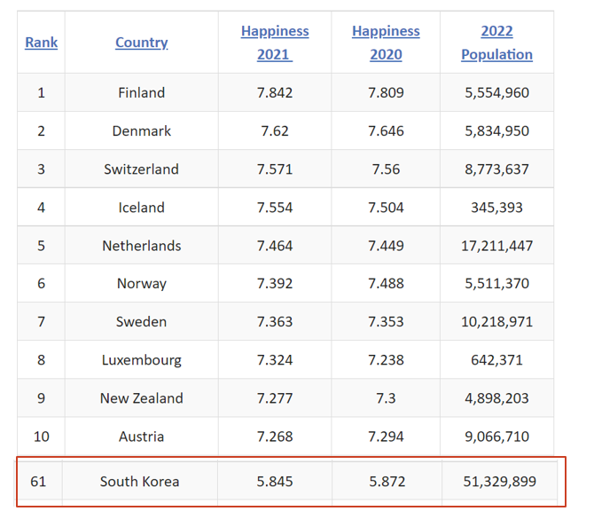 행복지수 1위와 61위의 차이점으로 바라본 행복의 조건