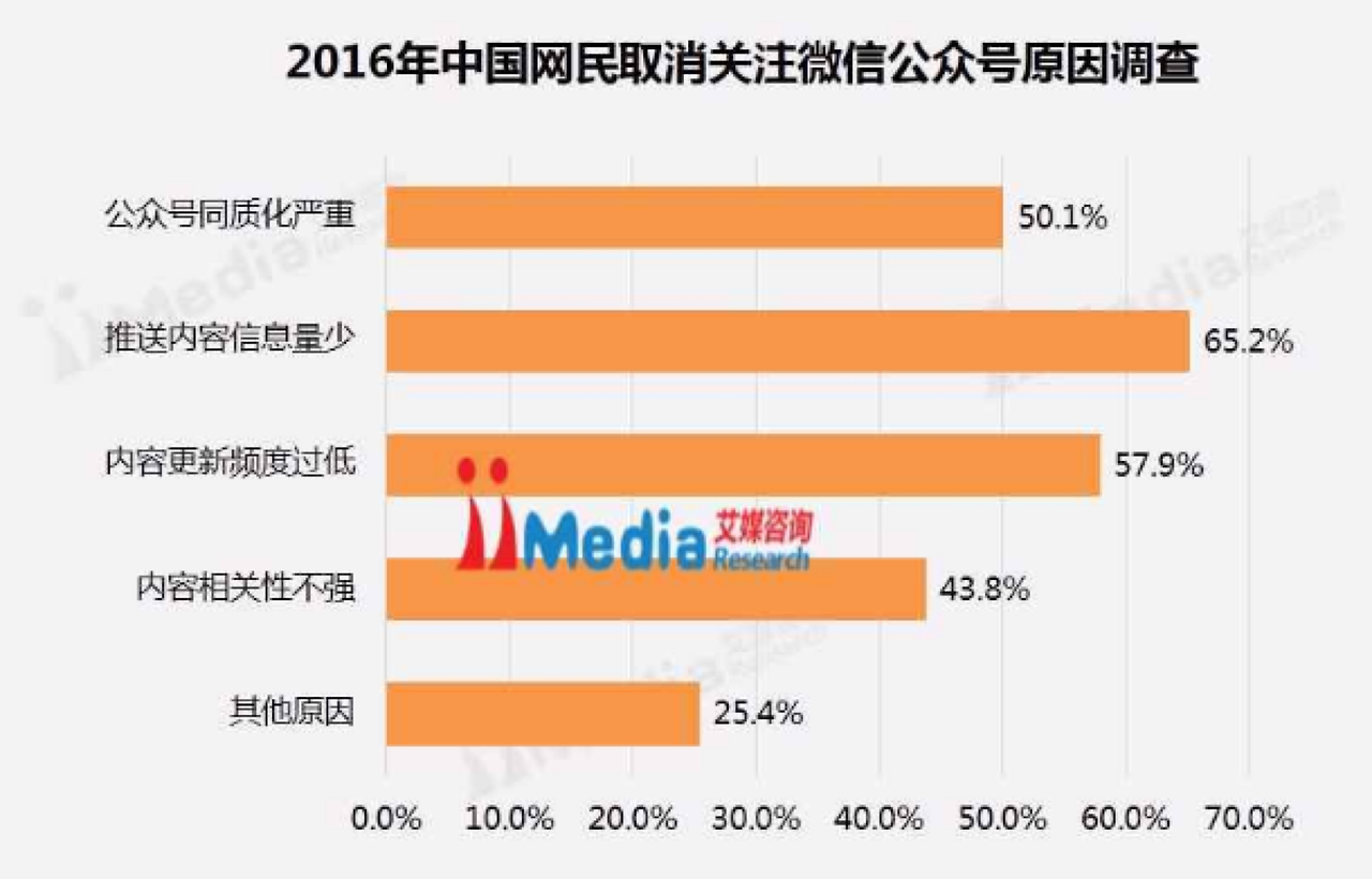 실제 조사 결과에 따르면 공중 계정 구독 취소 중 대부분이 콘텐츠 동질화 현상과 광고성 글의 증가, 주제에 벗어난 콘텐츠 배포 등으로 인해 발생한다.