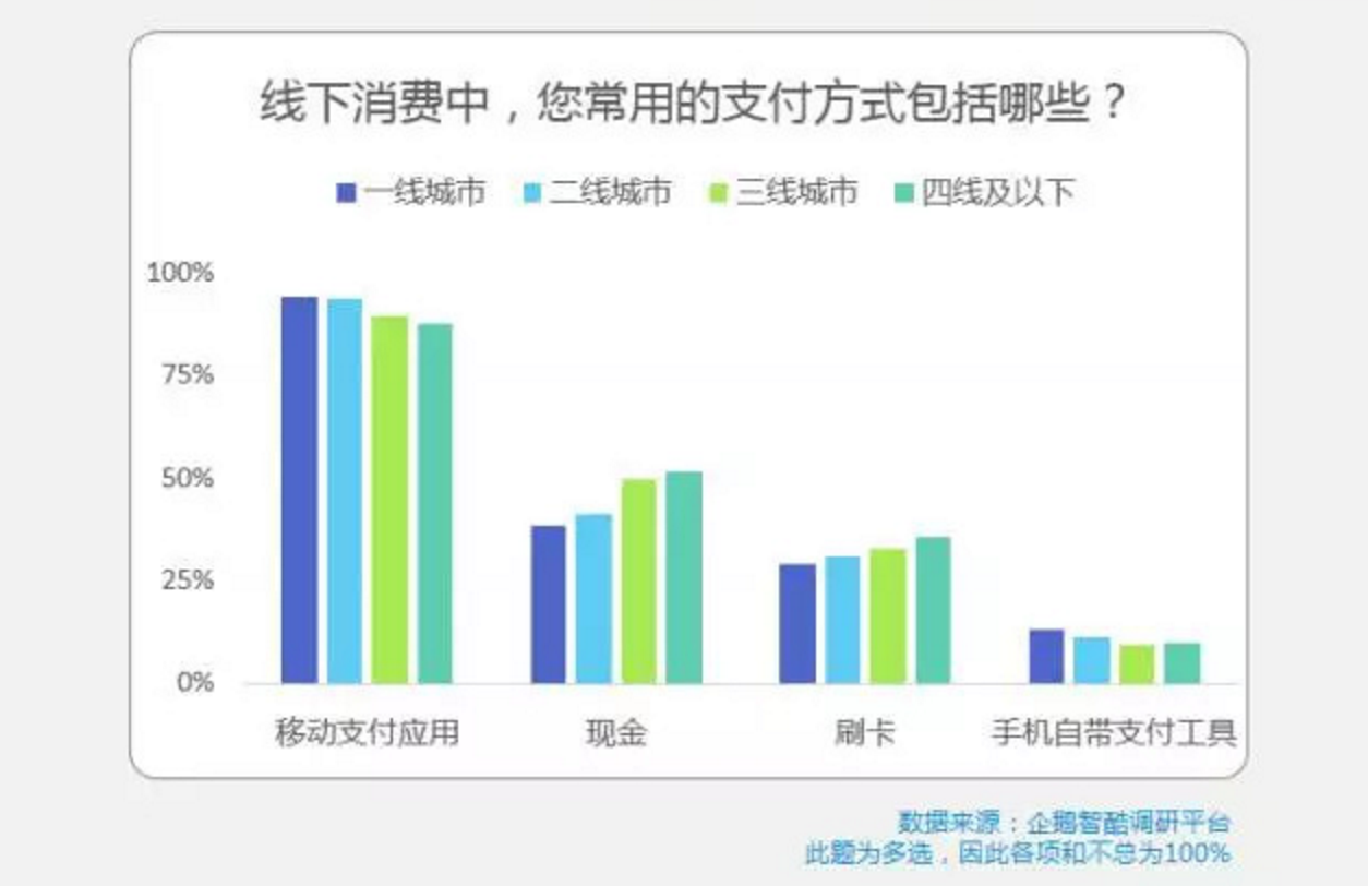 현금 사용률은 1선 도시에서 4, 5선 도시로 갈수록 점차 증가했으며 1선 도시의 유저들 중 오직 38.6%의 유저들만이 현금을 주 결제 수단으로 사용한다 답했다. 이에 반해 3선 도시와 그 이하 도시는 현금 사용률이 약 50%에 달하는 것으로 조사됐는데 이를 토대로 현금 없는 사회로의 변화는 아직 진행중이라는 것을 알 수 있다.