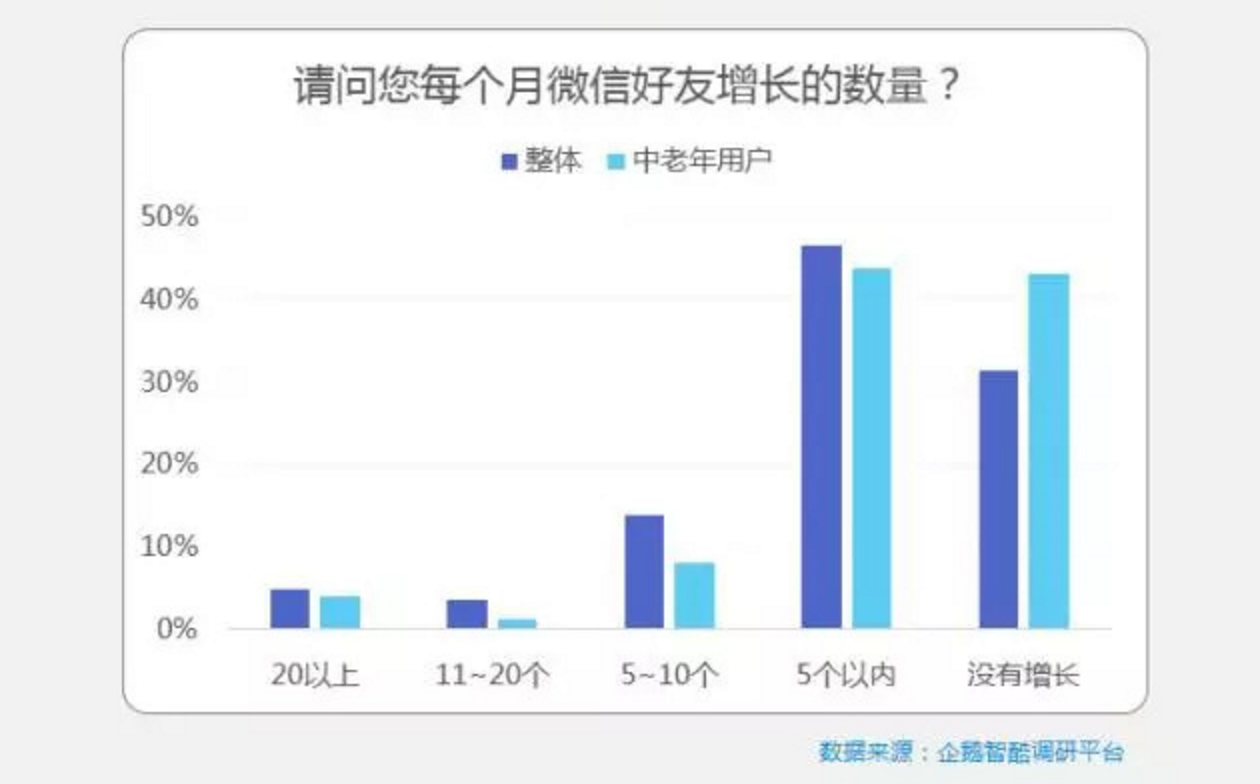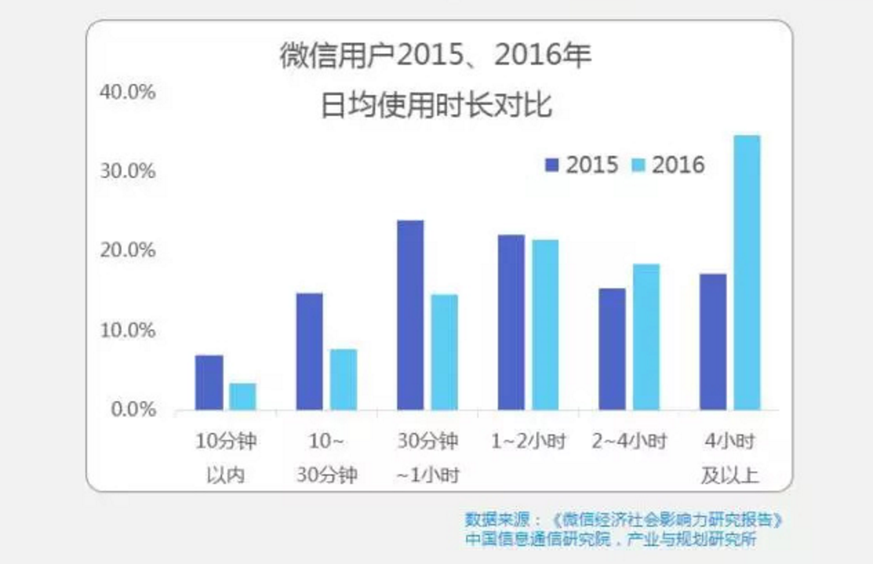 중국 데이터 통신 연구원의 조사에 따르면 2016년 위챗의 진성 유저가 2015년에 비해 증가했다고 한다. 또한 일 평균 사용 시간이 4시간 이상인 유저들역시 2015년에 비해 배 이상으로 증가했다.