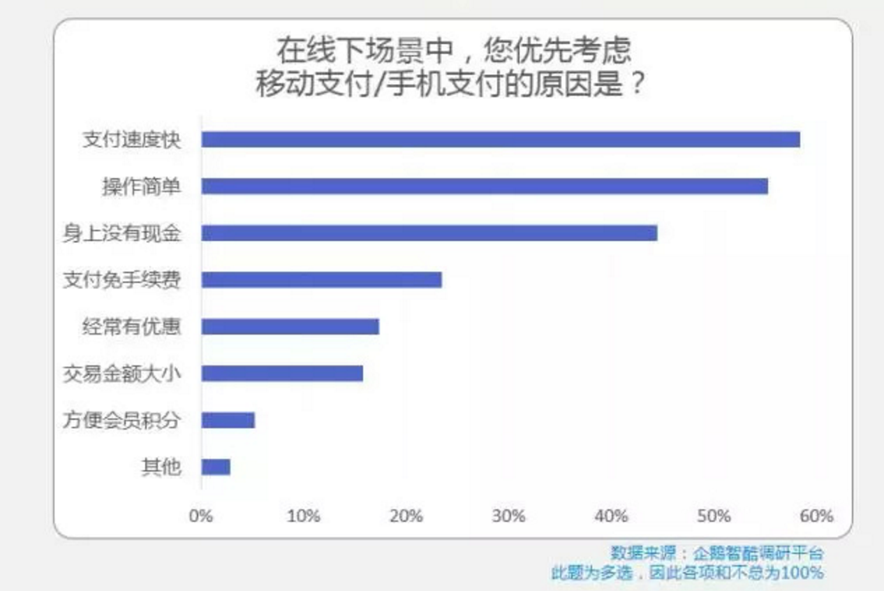 결제 수단에 대한 유저의 수요 (편리함, 속도)는 편의점에서 제공하는 편의성, 실효성과 잘 맞아 떨어지며 이것이 중소형 마트와 편의점에서의 위챗 페이 사용률에 큰 영향을 미쳤다.