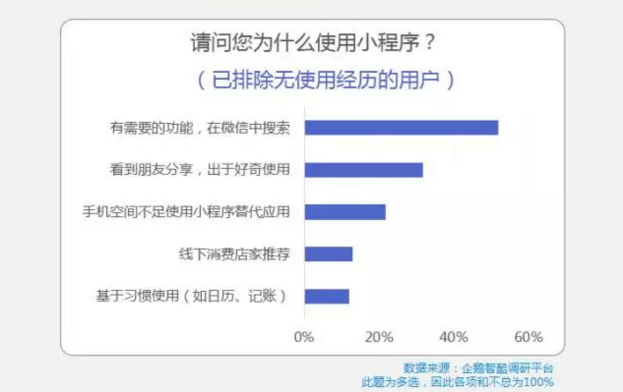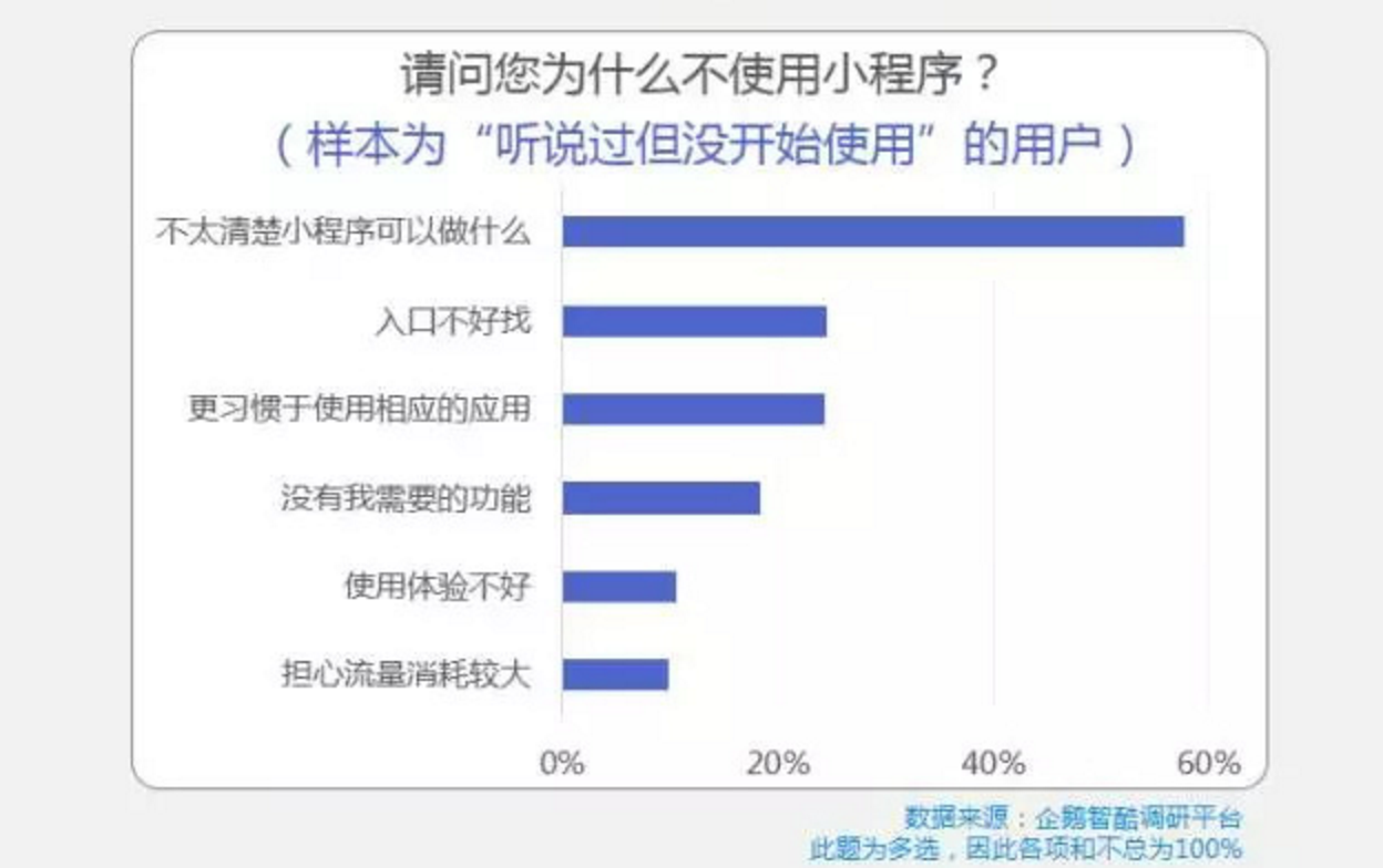 연구 데이터에 따르면 설문 응답자 중 20.4%만이 위챗 샤오청쉬 서비스를 사용해본 적이 있다고 답했고 46.7%의 유저들은 들어는 봤으나 사용해본 적은 없다 답했다.