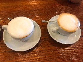 두 시간 동안 총 두 번 만들었는데, 이렇게나 차이가 난다. 신기하다. 내 손으로 만들었는데, 이렇게 다를 일인가 싶다. 거기만 가면 울상이다. 나이 들어 외부조건이 아닌 내 안의 조건으로 좌절감이 드니 견딜 수가 없다. 그나마 오른쪽 사진의 왼쪽 커피가 에스프레소와 우유, 거품이 잘 섞여 먹을만했다.