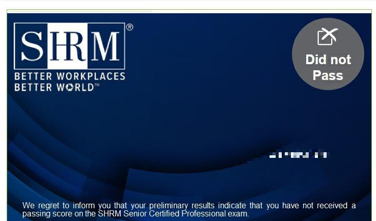 불합격 통보 후 1주일이 지나 이메일 하나를 받았다. SHRM-SCP 자격 배지(badge)를 수락하라는 것이다! 오잉? 이게 웬 떡인가 싶어 바로 '수락'하고 링키딘에 연결했다. 그러다 '혹시 SHRM 측의 행정 실수라면 어떻게 하지?'라는 생각에 SHRM 홈페이지에 접속해 시험 결과를 확인했다. OM~~~ 결과는 "합격"이었다! 이럴 수가, 이런 반전이 있을 수 있다니! 불합격인 줄 알았는데 합격이었을 때의 기쁨, 진짜 진짜 너무 좋았다! (2주가 지났는데도 여전히 흥분된다:D) SHRM에서 공식 사과 이메일도 날아왔다. 이제 '합격'은 의심할 여지가 없다!