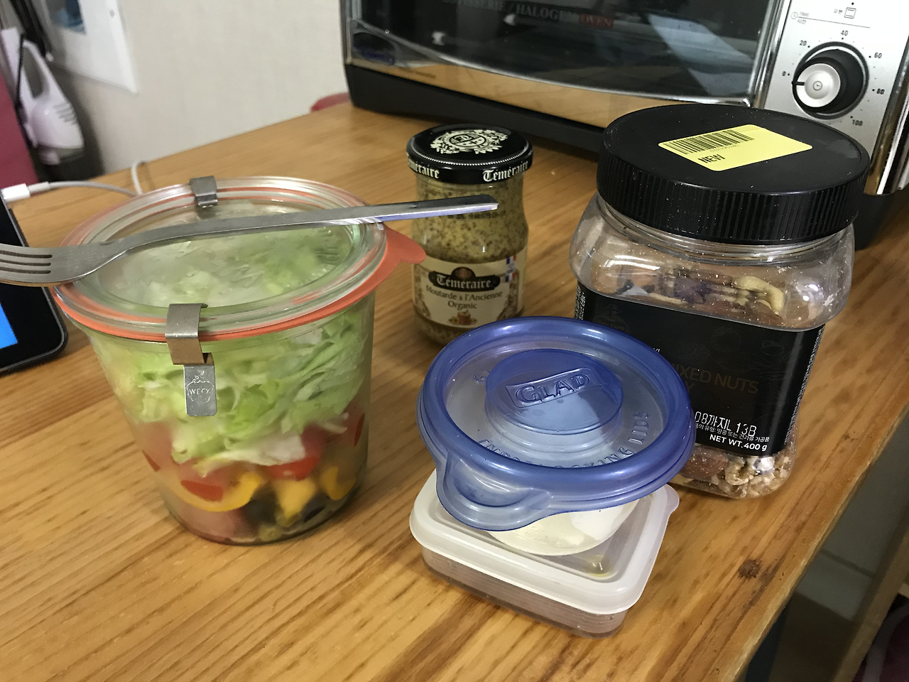 샐러드는 손질이 귀찮기 때문에 한번에 세개정도씩 만드는 게 좋다.