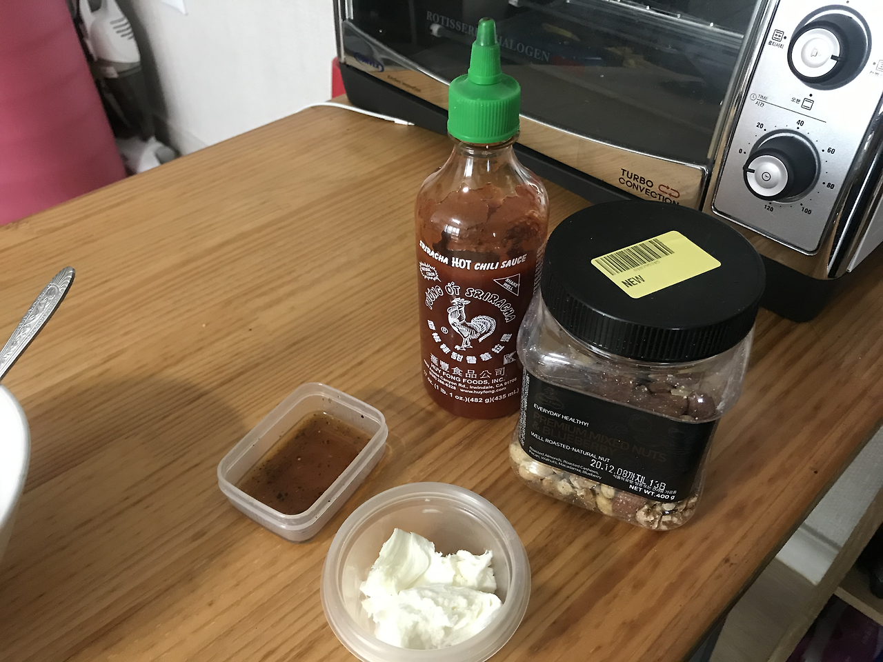 매콤하게 먹고 싶은 날은 스리라차도 한바퀴 둘러서 먹었다.