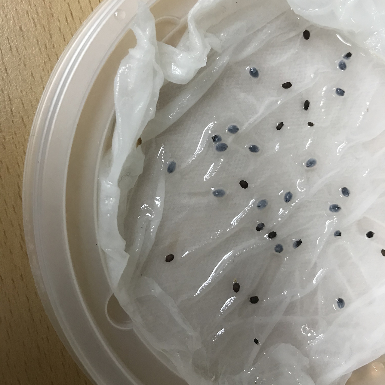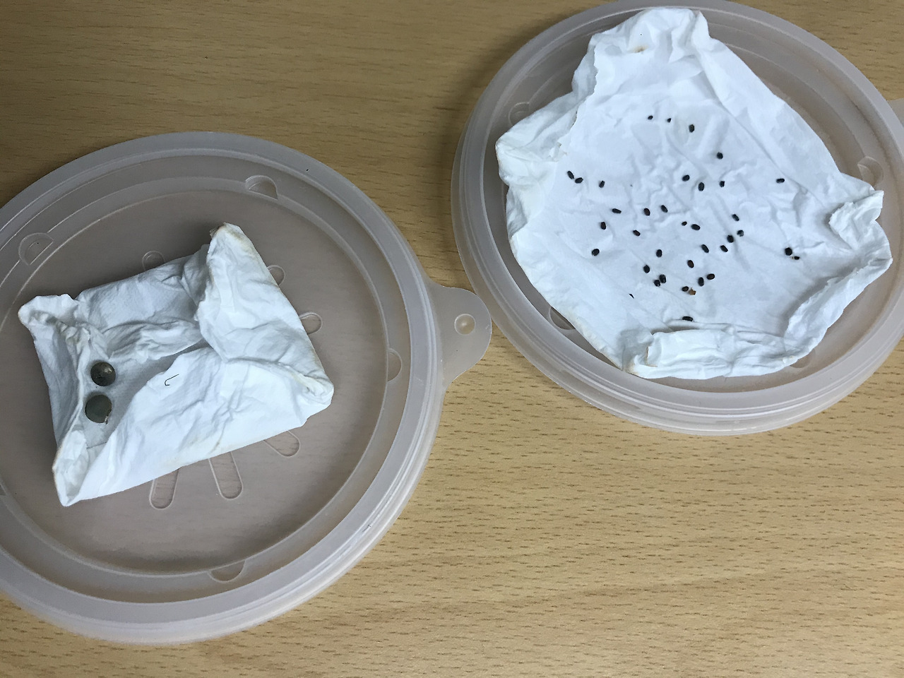 티슈에 물을 적셔 씨앗을 불려둔 다음날.