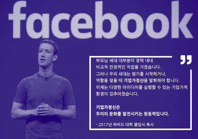 다행히 기술의 발전으로 누구나 세상이 원하는 것을 쉽게 만들고, 팔 수 있게 되었어요. 페이스북의 창업자 마크 주커버그는 대학을 떠나는 후배들에게 앙트십을 강조했어요. 부모님 세대는 한 직장에서 정년퇴직하는 삶을 살았지만, 본인을 포함한 밀레니얼세대는 한 직장에 매어 살아갈수도 없을 뿐 아니라, 무엇이든 쉽게 만들어낼 수 있는 시대가 되었으니 앙트십을 발휘해 달라고. 본인 역시 어렸을 때부터 게임, 메시지서비스를 만들었던 경험이 페이스북 창업으로 이어질 수 있었다며.