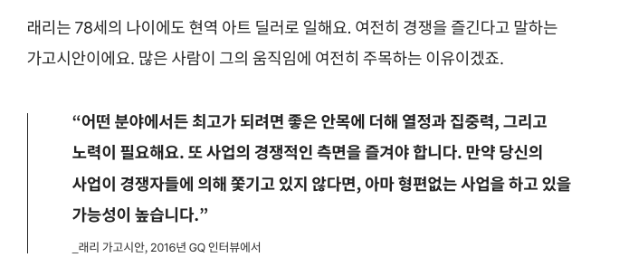연 매출 1조의 미술 작품 거래상 래리 가고시안의 말처럼