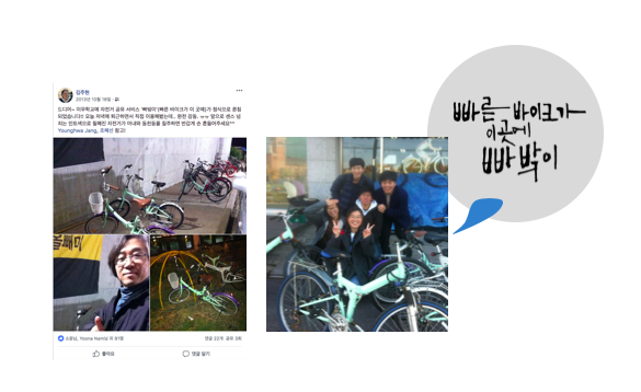그렇게 선의에 기대어 시작하게 된 앙트십스쿨은 7년의 시간이 흐르는 동안 씩씩하게 자라나 이제 공교육 현장을 중심으로 기업가정신 교육 프로그램을 제공하는 역할을 맡아 하고 있습니다. 앙트십스쿨은 창업가를 대상으로 하는 실무교육이 아닌 마인드셋 교육입니다. 누군가는 앙트십스쿨을 통해 창업가의 꿈을 꿀 수도 있지만, 앙트십스쿨은 '누구나 내 인생의 ceo로 살아가는 것'을 목표로 합니다. 앙트십스쿨은 아이들에게 학교 밖 세상의 변화를 알려주고, 세상에는 할 수 있는 일이 정말 많다는 사실을, 그래서 누구나 나답게 살 수 있도록 용기를 줍니다. 그래서 앙트십스쿨은 지식 전달 보다는 아이들이 실제로 창업가처럼 문제를 찾고, 해결해 볼 수 있도록 프로젝트 수업에 비중을 두어 운영하고 있습니다. 기업은 세상의 문제를 해결하는 조직이고, 학교 밖 세상은 온통 해결해야할 문제 투성이니까요. 앙트십스쿨에 참가하는 학생들은 쓰레기 문제부터 급식이나 등하교 환경 등 자신의 일상 속에 놓여있는 문제를 찾아 정의하고 해결합니다. 그렇게 학생들이 진행했던 프로젝트 중에 빠밬이 라는 자전거 공유 서비스 프로젝트가 있습니다. 이우 고등학교 학생들은 '학교에 버스가 자주 오지 않아 불편하다'는 문제를 찾았고, 이에 대한 해결방법으로 자전거 공유라는 아이디어를 찾아 서비스로 만들어 운영했습니다. 아이들이 자전거 공유 서비스를 운영한게 2013년도였으니 중국의 자전거 공유서비스들이 생겨나기 전이었습니다. 아이들은 자전거 공유 서비스를 만들기 위해 버려진 자전거를 주워 고치고, 고친 자전거들을 스테이션별로 배치해 함께 사용할 수 있도록 했습니다. 직접 앱 서비스를 만들어 운영할 수는 없으니 회비 1000원을 납부한 회원들만 초대해 카톡방을 만들고, 실시간으로 자전거 보유현황을 공유하며 이용했고요. 이렇게 아이들은 자신이 살아가는 생활 속에 놓여있는 불편함과 필요를 발견하고 해결하는 과정에서 1) 교과서 밖 실재 세상을 접하고 2) 나는 어떤 일을 할 때 즐거운지, 몰입하는지, 잘하는지 발견하고 3) 함께의 힘을 배우게 됩니다.