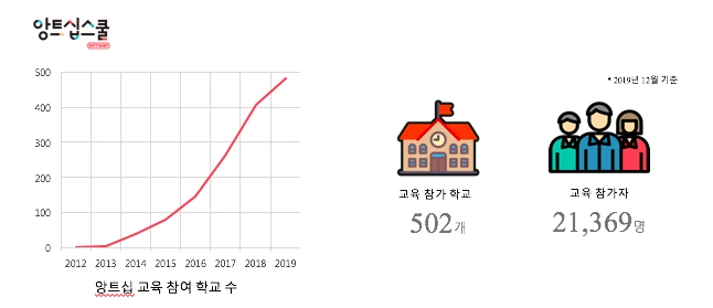 7년 전, 선의에 기대어 시작했던 앙트십스쿨은 인내의 시간을 거쳐 단단해지게 되었습니다. 7년 전에 비해 학교 현장에서 기업가정신 교육에 대한 인식도 커졌고요. 2020년 현재 앙트십스쿨은 공교육 현장을 중심으로 학교와 세상을 잇고, 오늘과 내일을 잇는 징검다리 역할을 하고 있습니다. 더 많은 앙꼬쌤(앙트십 코치)들이 학교를 찾아 아이들이 저마다의 개성과 능력을 살려 나답게 살아갈 수 있도록 도울 예정이고요. 그 시작이 우리 사회에 꼭 필요한 서비스를 만들어 내겠다는 각오에서였듯, 앞으로도 이제껏처럼 인내하고, 즐기며 변화를 만들어낼 예정입니다.