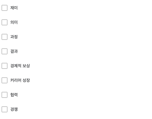 이를 조금 더 정밀하게 선택하기 위해서는 일을 선택하는 나만의 기준을 정해 둘 필요가 있습니다.