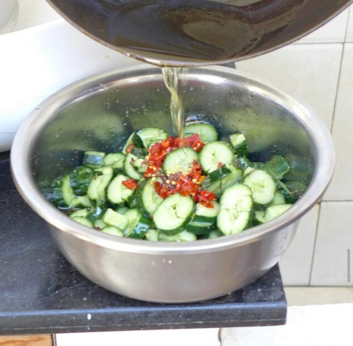 중국고추장을 사용해서 한국의 매운맛을 제대로 표현 못했음에도 불구하고 정말 맛있다며 두그릇 세그릇 먹는 사람들을 보니 정말 고맙고 눈물이 났다. 감정을 바로 잡고 토마토 절임은 어떠냐고 물어봤다. 이내 손으로 따봉 표시를 하는 사람들, 내가 먹었는데도 어릴때 할머니 곁에서 먹던 그 맛이 나서 눈가가 촉촉해졌다.