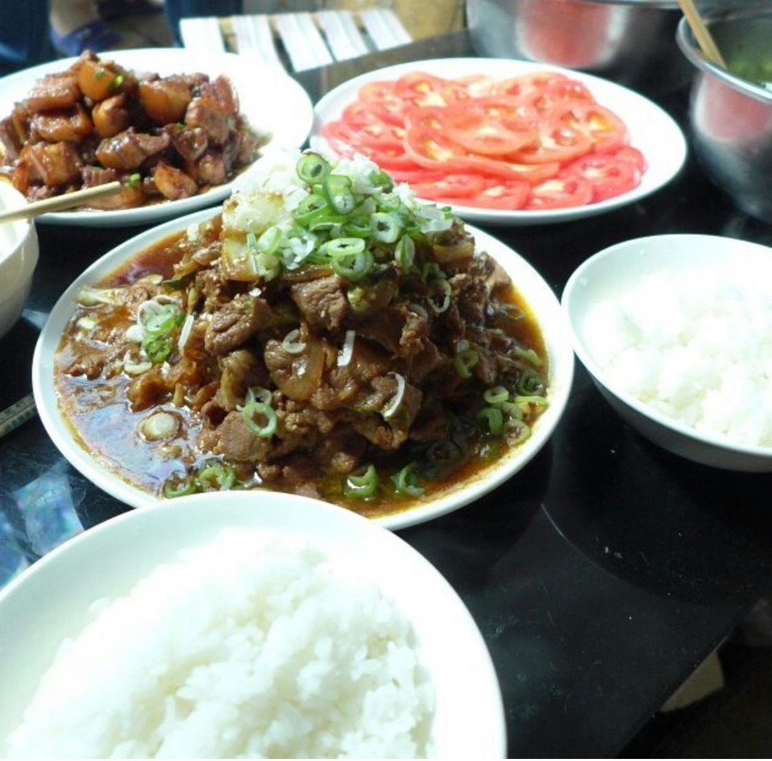 많은 사람들이 식탁에 둘러앉고 "쎄쎄" 라는 짧은 단어 속에 식사는 시작되었다. 난 제일 먼저 형의 동파러우에 젓가락이 가더라고 꼭 먹어보고 싶었다. 정말 맛있었다. 취미가 요리라는데 그 수준을 넘은 맛이었다. 간도 쎌줄알았는데 적당하고, 돼지고기의 비린맛도 없고, 대단했다.