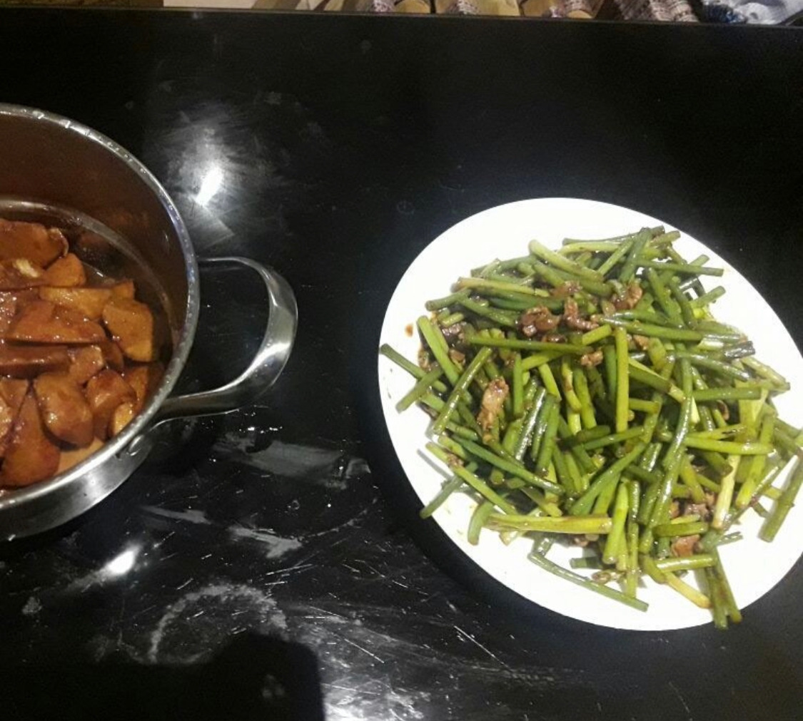1시간도 안돼서 요리는 끝이 났다. 형이 만든 음식은 두개다. 마늘쫑 돼지 고기 볶음, 토란 감자 조림. 한식과 비슷하다고 생각했는데 산둥지역 음식이란다. 형은 하나 부터 열까지 형이 다 챙겨 주었다. 밥이 없다고 하니 밥집에가서 밥도 사서 가져오고, 그렇게 형의 요리를 맛보기 시작했다. 감사함은 둘째치고 일단 맛이 너무 완벽했다.