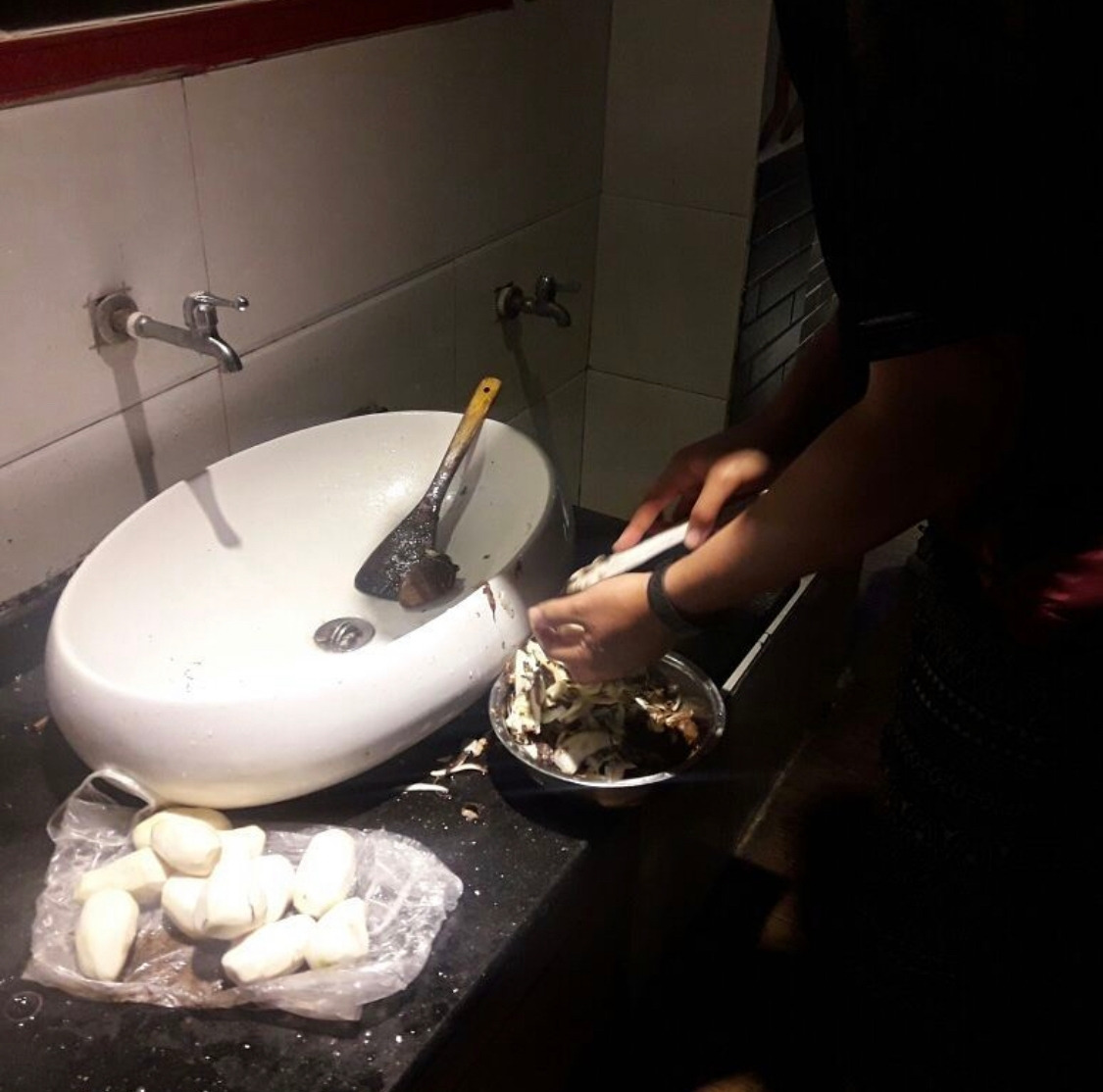 시장에선 마늘쫑, 토란,기타 여러 채소들을 샀다. 홍하우주형의 음식 맛을 알기 때문에 더 기대했다. 장을 다 본후 주방에 도착한 나와 형은 역할을 분담 했다. 미리 사전에 이야기 한 것도 아닌데 주방보조(나), 요리사(홍하우주형) 이렇게 각자의 역할에 따라 재료를 다듬고 준비했다. 토란에 묻은 흙을 씻고 껍질 까는 굳은 일은 내가하고 세심함이 요구되는 재료 썰기는 형이 했다. 눈으로, 코로, 가슴으로 같이 요리하고 배웠다.