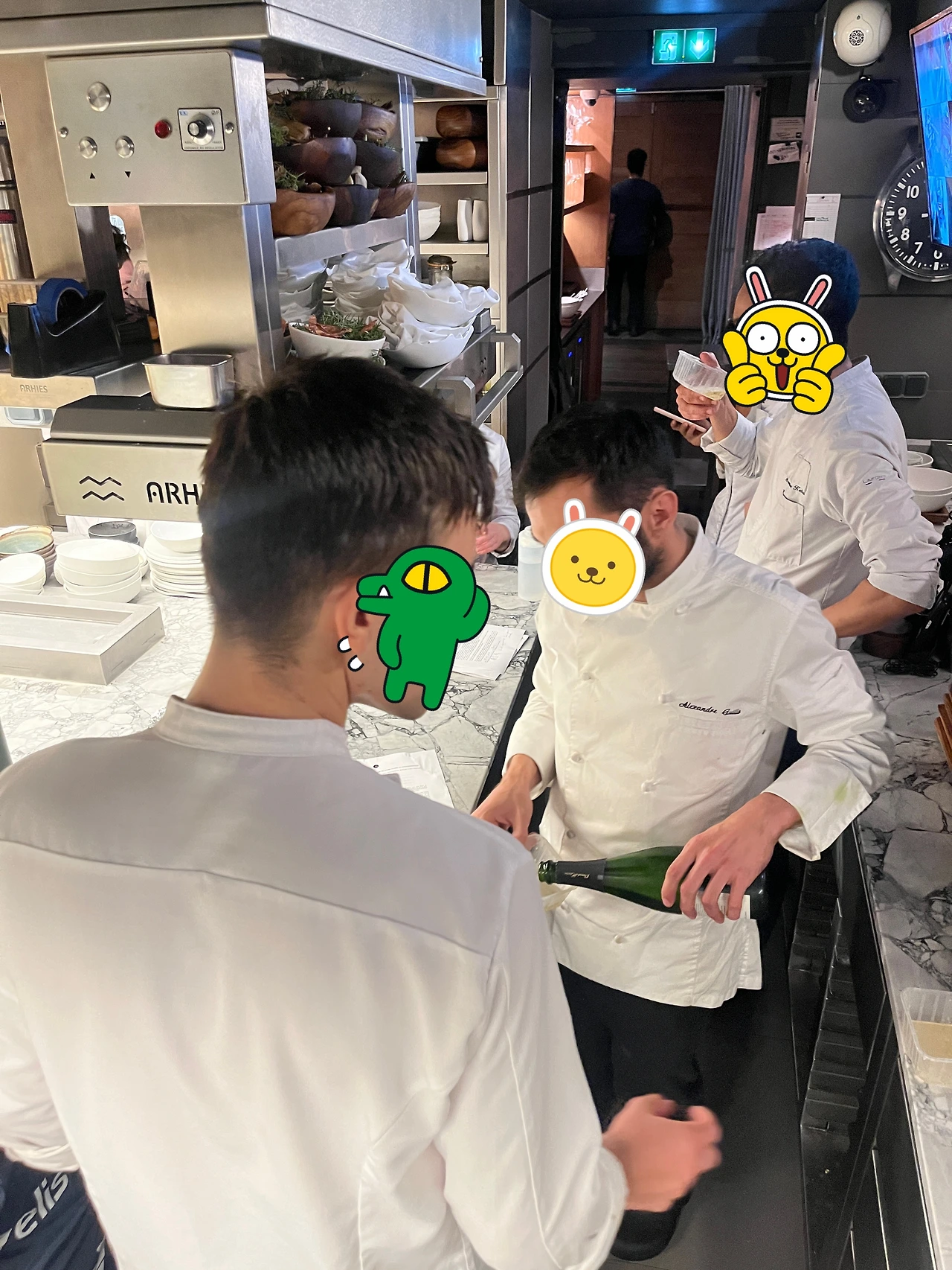 몇 분 안에 요리가 나와?라는 말을 계속 말하며 커뮤니케이션과 정리 이 두 가지가 그냥 숨 쉬는 것 마냥 이루어져야 했기 때문에 언어가 되지 않는 이상 나는 이 모든 게 정말 받아들이기가 힘들었고, 적응하기가 너무 힘들었다. 한국에서도 긴박한 상황에서 한국말로 하더라도 꼬이기 일 수인데 미슐랭의 본고장 프랑스 파리에서 그것도 2스타의 레스토랑에서의 서비스란.. 정말.. 밥도 제대로 못 먹게 긴장했었다. 하지만 정말 이를 악물고 혼나더라도 또 시도하고, 그러다가 접시도 깨버리고.. 그러면 또 지하에 내려가서 청소하고, 또 일주일 지나서 1층에 올라가서 서비스하다가 또 혼나서 내려가고를 반복하고 마침내 나는 조금씩 서비스에 익숙해지기 시작했다. 안 들리던 불어가 들리나? 찰나에 또 실수를 하고, 정들었던 스타지 친구 JT 가 나가고 또 새로운 스타지 친구가 들어오고, 또 다른 직원이 하나둘씩 들어오고,