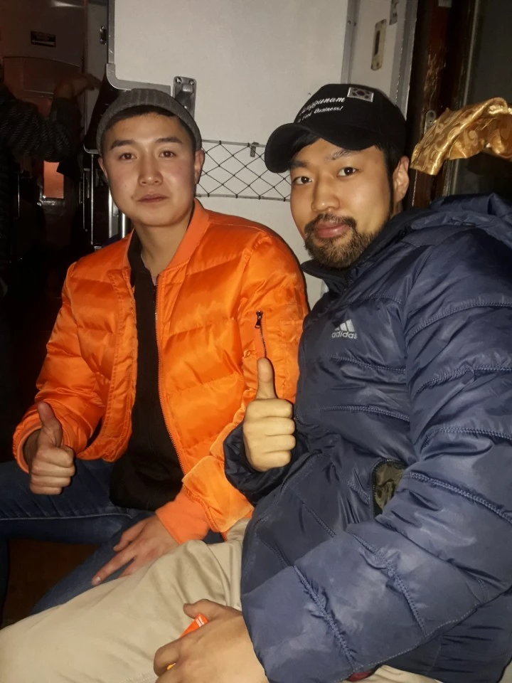 몇 시간이 흘렀을까. 주황 점퍼를 입은 청년이 내가 쓴 모자에 관심 있어하며 처음 말을 건넸다. (사실 나도 그 청년에게 말을 걸고 싶었는데 고맙게도 먼저 걸어주었다.) 몽골에서 두 달 넘게 살았기에 몇몇 문장은 기억해두고 있던 터라 내 좌석 앞의 청년에게 짧은 문장으로 대화를 이어갔다. "치니 *토고치?" (직역하면 "너 요리사지?") *몽골어로 요리사는 '토고치'라고 한다.