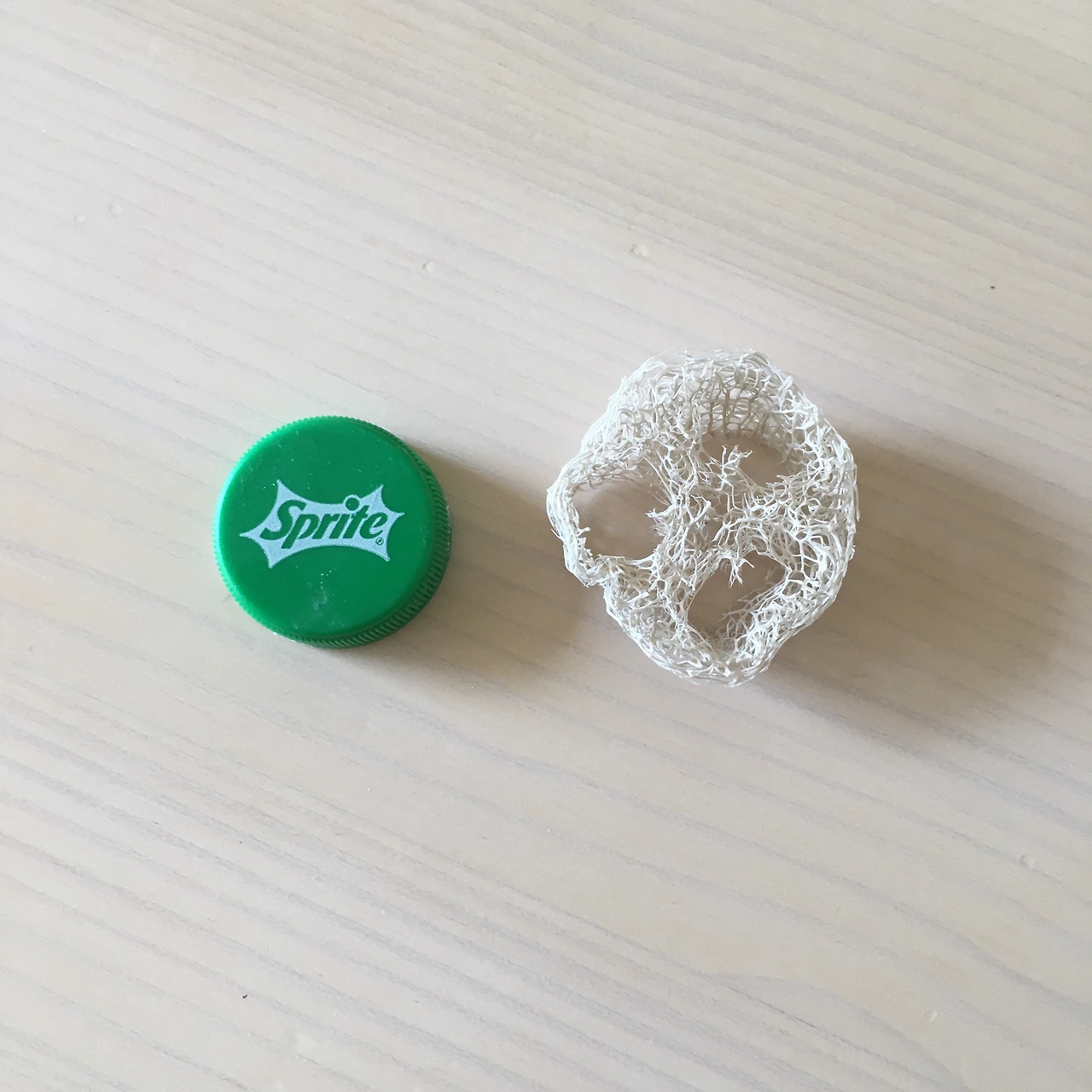 비누 받침으로는 비누 유저들에게 꿀팁으로 전해지는 병뚜껑을 썼는데, 보기에 썩 좋진 않았다. 그리고 좀 더 면적이 넓은 것을 쓰고 싶어서 천연 수세미로 바꿨다. 쓰다 보니 점점 비누인간으로 진화하는 과정 같아서 기분이 묘하다.
