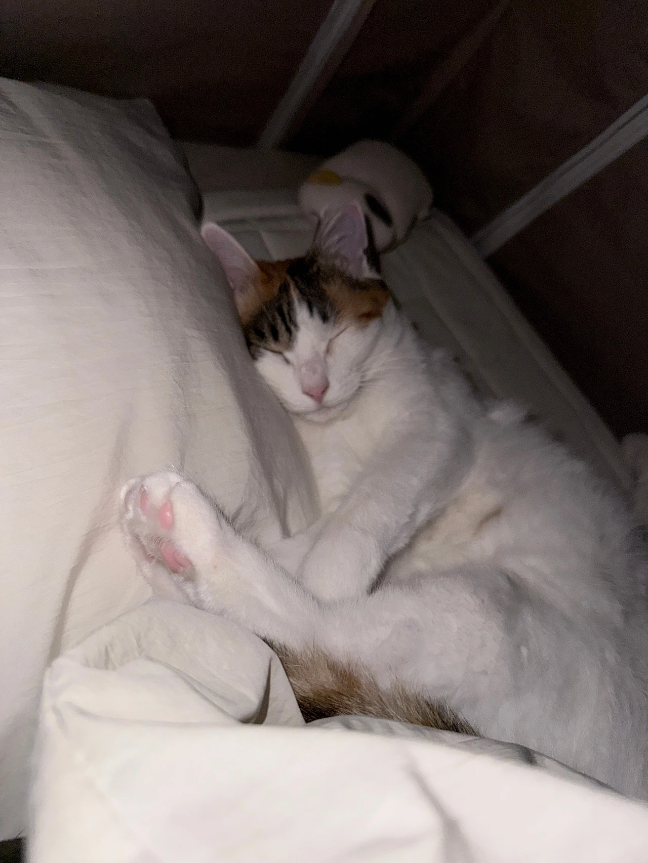 자기 전 핸드폰을 내려놓고 무드등까지 끄고 나면 눈이 어둠에 적응하기를 기다렸다. 콩이가 어떤 자세와 표정을 하고 있는지 궁금했다. 괜히 눈을 크게 뜨고 끔뻑거려보다가 지금 뭔가 귀여운 것 같은데, 생각이 들면 좋은 구경거리 놓칠세라 재빨리 핸드폰 불빛을 켜서 콩이 위에 가져다 댈 때도 있었다. 원인 제공은 고양이가 했지만 초보 집사의 명백한 변태 행동이었음을 인정한다.