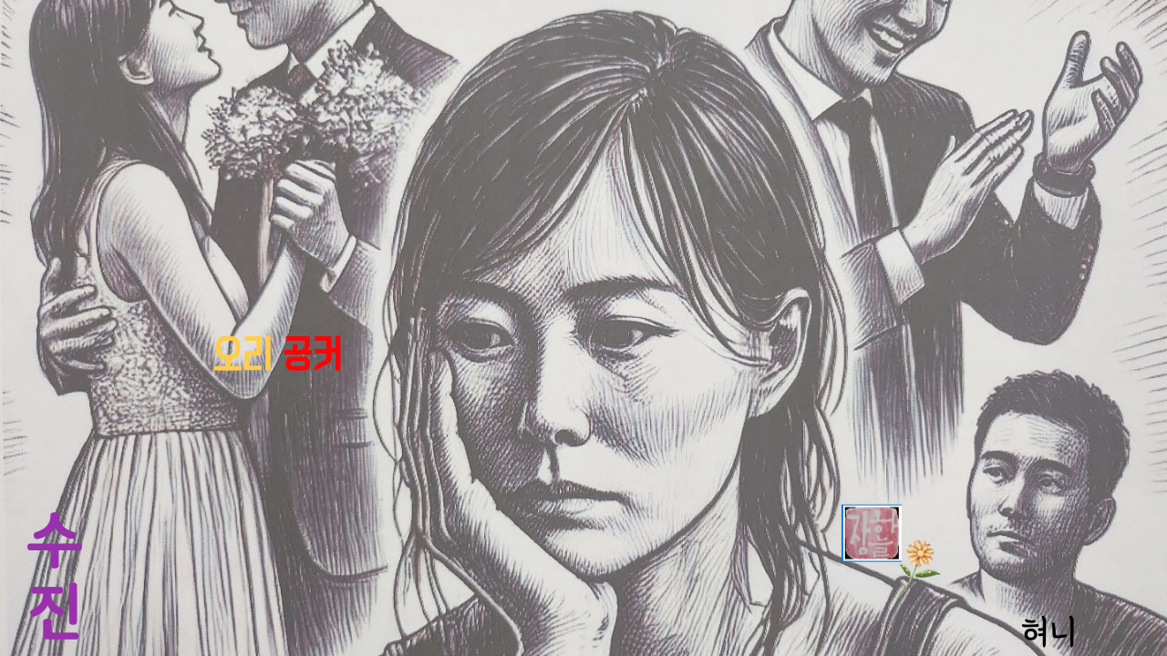 전율했던 감각이 이내 사그라들고, 수진은 몰려오는 현타에 눈을 감았다. 그때, 수진의 눈에서 눈물이 흘렀다. 혀니는 수진의 옆에서 지친 듯 눈을 감고 누워있었다. 서늘한 공기가 살갗을 스치자, 남겨진 흔적이 더 뚜렷하게 느껴졌다. 따뜻했던 것이 점점 차가워지자 흔적을 닦아내려고 휴지를 찾다가 수진을 보았다.