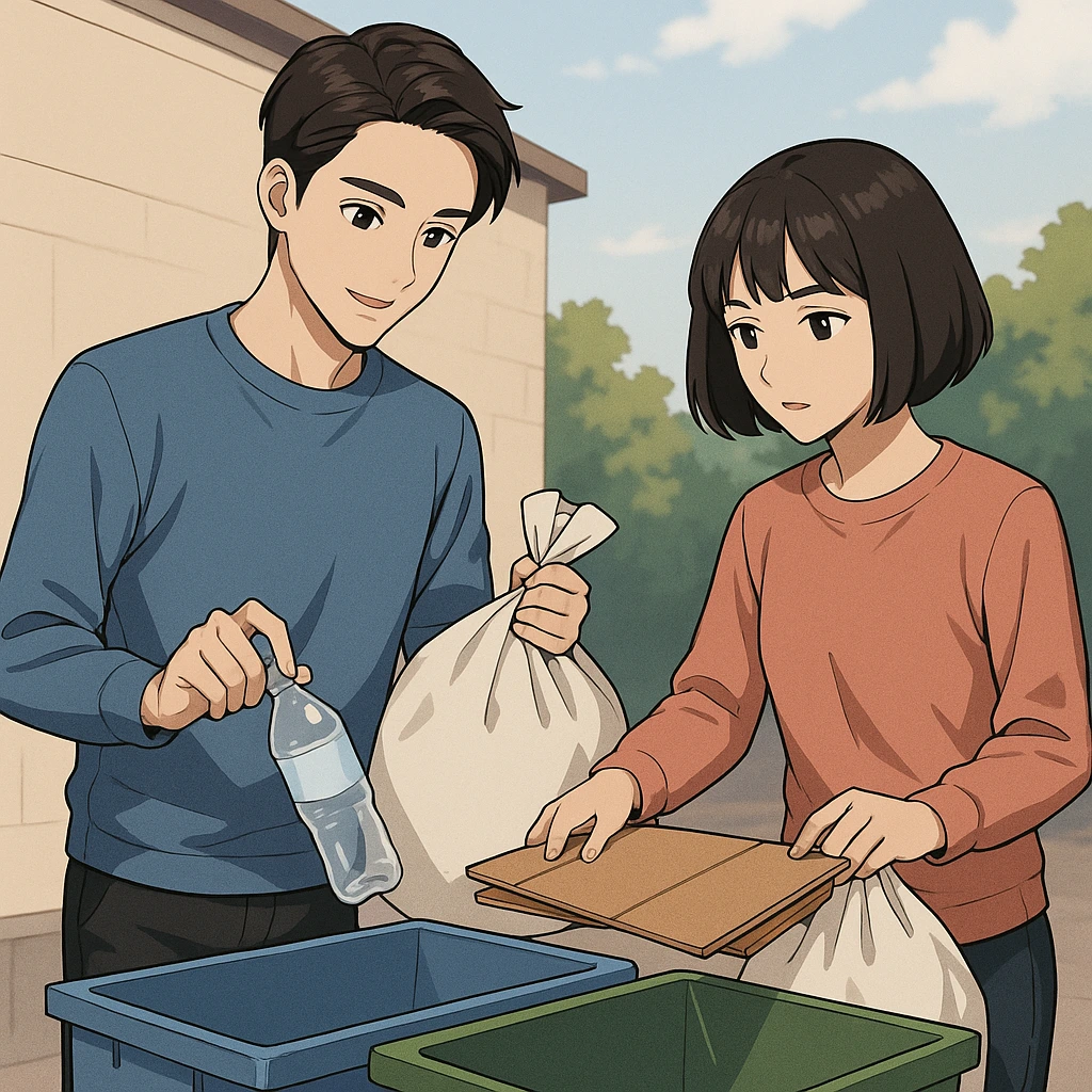 조용히 분리수거함 앞에 내려놓는다