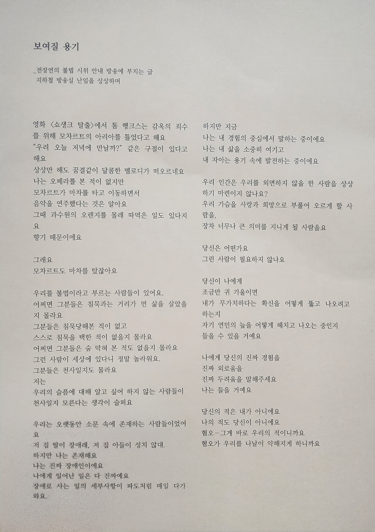 * 2023년 12월 13일, 혜화동 <어쩌다 산책> 서점 북토크에서 정혜윤 PD가 낭송한 시