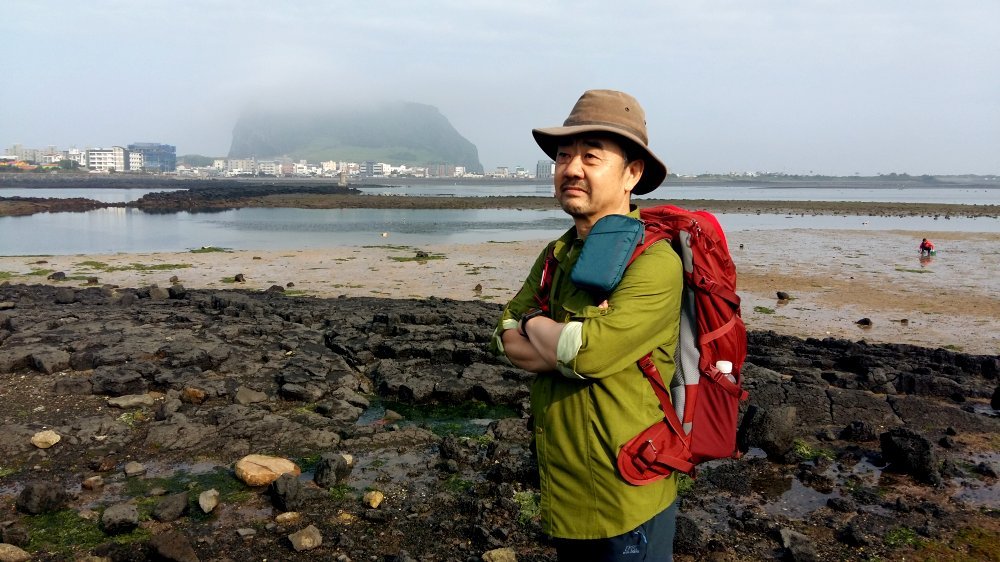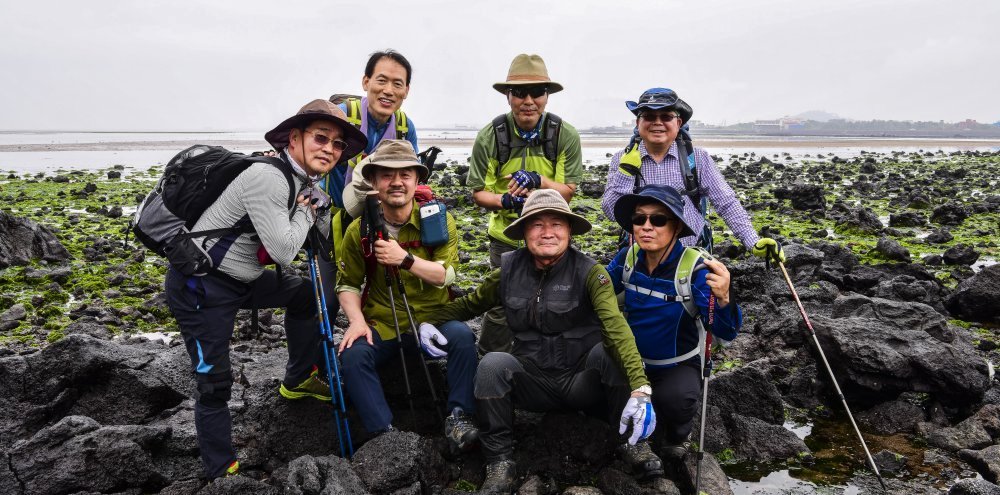 일행은 [성산일출봉]을 배경으로 한 컷 기념사진을 놓치지 않고 담는다. [시흥초등학교]를 출발해 [성산갑문입구] 해변까지 6시간 걸린 1코스는 출발점 1Km부터 3.5Km 구간까지 두개의 [오름]이 이어져 초반부터 다소 긴장을 하기도 했지만 이후 길은 대부분 해안가를 중심으로 이어지는 평탄한 길이었다.