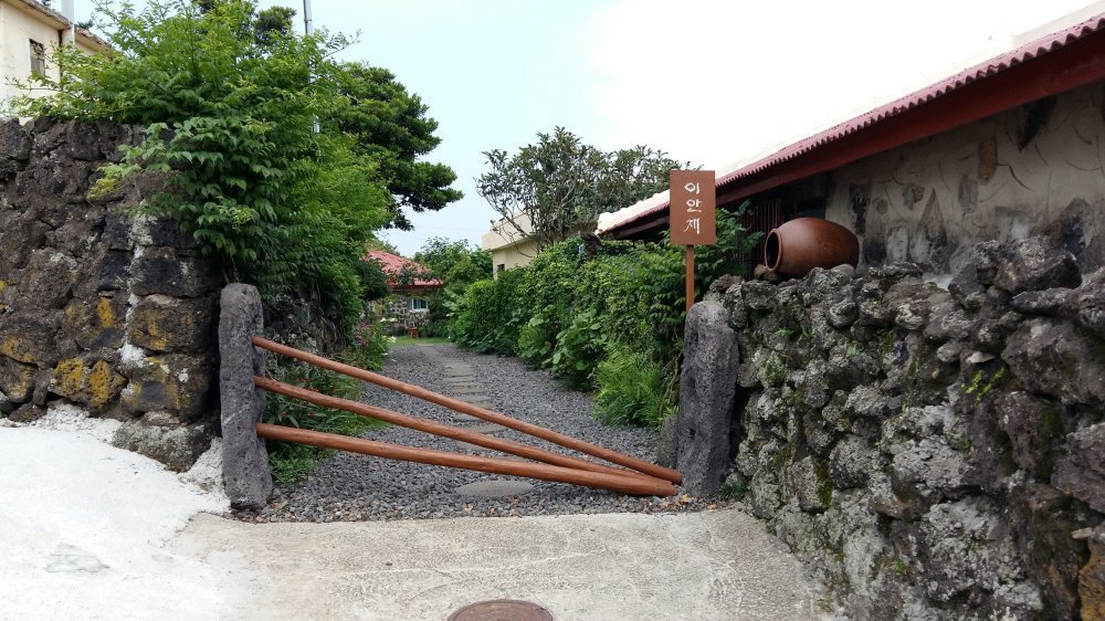 길을 걷다 출입구에 3개 빗장이 내려져있는 제주 전통가옥 앞을 지나며 그 특이함을 사진에 담아본다. 대문이 없는 민가는 출입구에 정주석을 세워 주인의 부재(不在)를 알리는데, 하나가 걸쳐 있으면 주인이 가까운 곳에 있고 두개가 걸쳐 있으면 한참 있다 돌아오며 세 개가 걸쳐 있으면 저녁 무렵 돌아온다는 표시라고 한다.