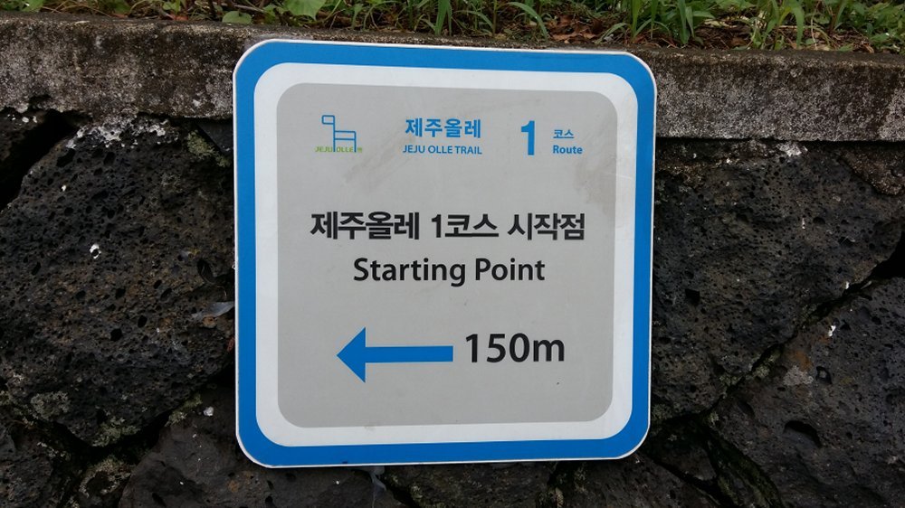 서귀포에서 시작되는 제주올레 제1코스는 총 15.6km로 2개의 오름을 오르며 대부분 해안가를 따라 제주의 바다경치를 볼 수 있는 구간이다. 오전 11시 성산읍에 속한 아담한 [시흥초등학교] 정문을 사진에 담은 뒤 올레지기의 안내를 받아 1코스 초입에 들어서니 일출사(日出寺) 표지석과 올레길 출발상징인 “간세”가 세워져 있다.