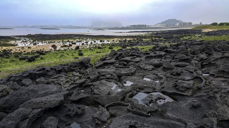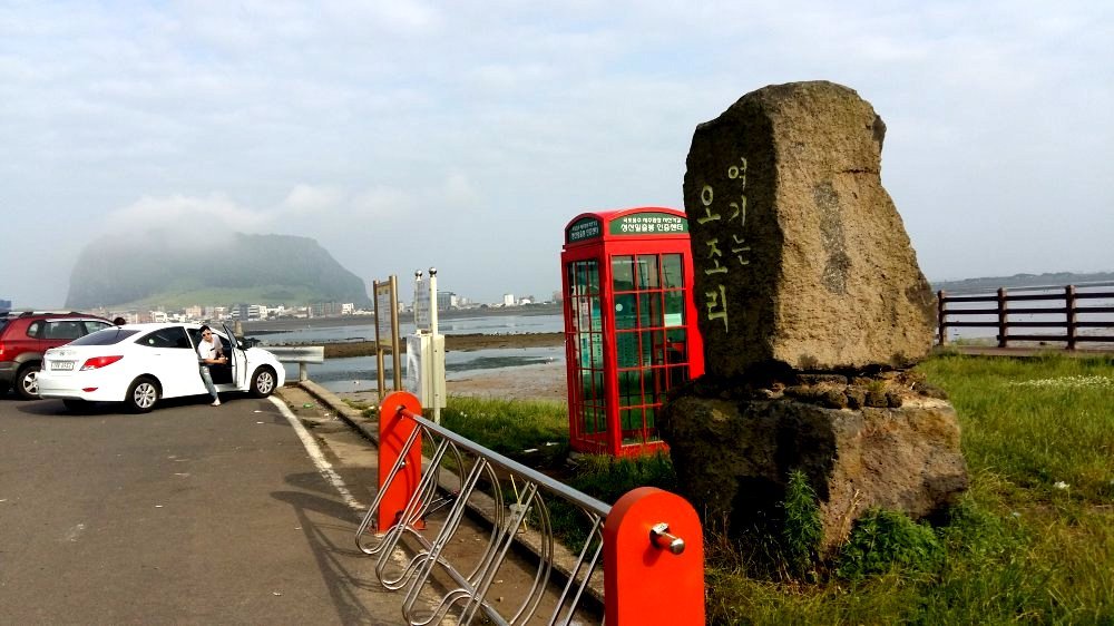 첫 햇빛 닿는 마을인 오조리 어촌계를 빠져나오니 우측 길에 성산일출봉이 가까이 보인다. 흐린 날씨 탓에 선명하지는 않지만 신비한 모습으로 아스라이 다가오는데, 이 곳에서 바라보는 성산일출봉은 또 다른 모습이다.