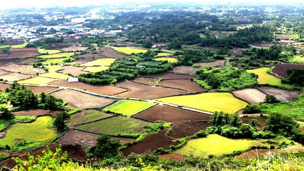 말미오름 정상에서는 멀리 [우도]와 [성산일출봉]이 눈에 들어오는데, 넓게 펼쳐진 바다와 푸르른 들판이 어우러진 아름다운 성산읍 풍경에 흠뻑 빠져든다. 정상우측에는 [한반도를 닮은 밭]이 소개돼 있어 여행길에 재미를 더해주고 있다.