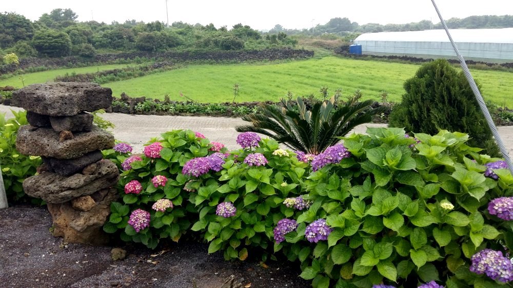 이어 1코스 백미라는 알오름을 오르는데, 멀리 언덕이 눈에 들어온다. 저 너머에는 무엇이 있을지 기대하며 걸음을 재촉한다. 알오름은 새알을 닮은 오름에서 이름 지어졌다 한다. [알오름]으로 향하는 풀밭 길에는 예쁜 수국과 이름 모를 야생화가 널브러져 있다.