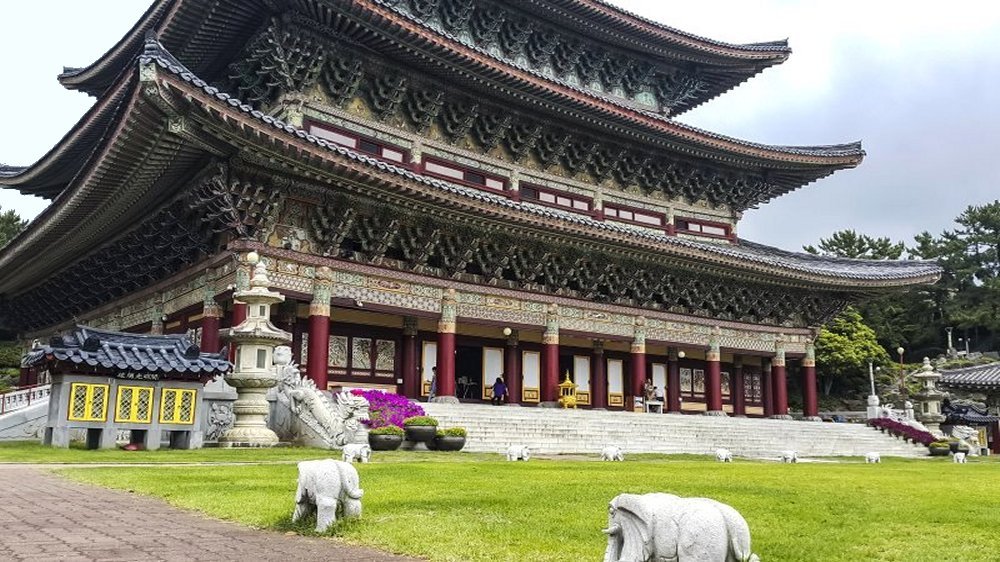 길을 따라 처음 마주하게 되는 약천사(藥泉寺)는 30여m 드높은 삼단지붕이 바다를 향해 비상하듯 활짝 날개를 펴고 있는 것 같다.