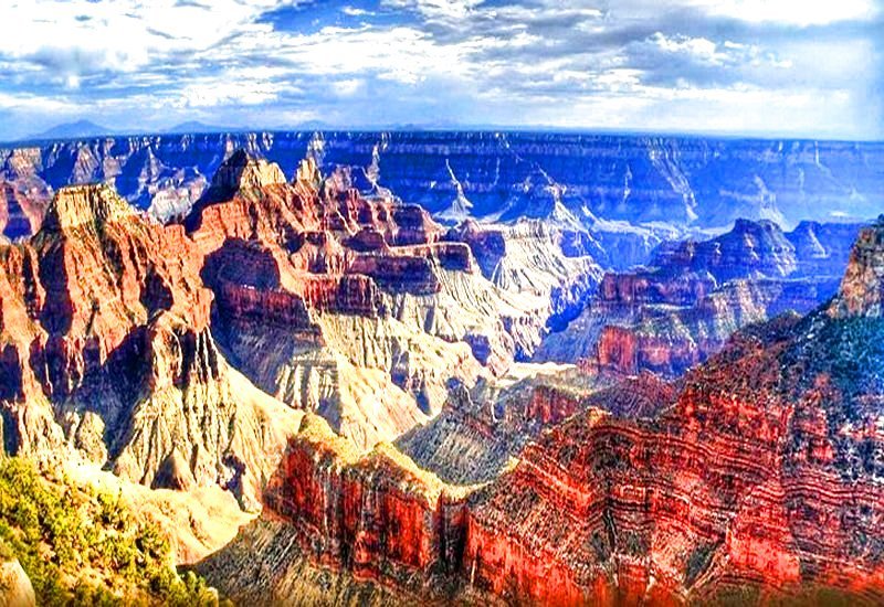 [그랜드캐니언]은 미 애리조나 州 북부에 있는 거대한 대협곡으로 콜로라도 강이 콜로라도 고원을 가로질러 흐르는 곳에 20억 년 전 형성됐다 한다. 협곡의 길이만도 447㎞이고 깊이 또한 1,500m라니 드넓고 깊은 협곡은 그야말로 불가사의한 경관을 보여주고 있다.