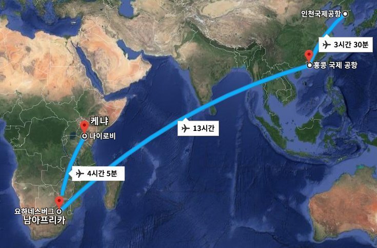탄자니아와 함께 “동물의 왕국”을 대표하는 케냐는 소설 [아웃 오브 아프리카]와 [킬리만자로의 눈]의 영화 촬영지이자, 킬리만자로 만년설을 한눈에 볼 수 있는 곳이기에 더욱 케냐에 대한 호기심을 자극했다. 이곳을 가기위해서는 홍콩을 경유해 20시간 이상 장시간 비행을 해야 하기 때문에 마음에 각오를 단단히 해야 한다.