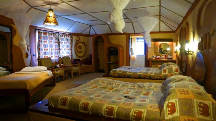 [Amboseli Sopa Lodge]는 전기가 17시~24시까지, 온수는 19시까지 공급되기에 서둘러 샤워를 마쳐야 했다. 짐을 넣어주는 포터는 객실이용을 안내하며 숙소에 3개 침대가 있는 이유를 알기 쉽게 설명해 주는데, 화장실 쪽은 마마 침대이고, 문 쪽은 파파, 창가 쪽 침대는 “마마&파파”라며 검은 미소를 흘리더니 이내 방을 빠져나간다.