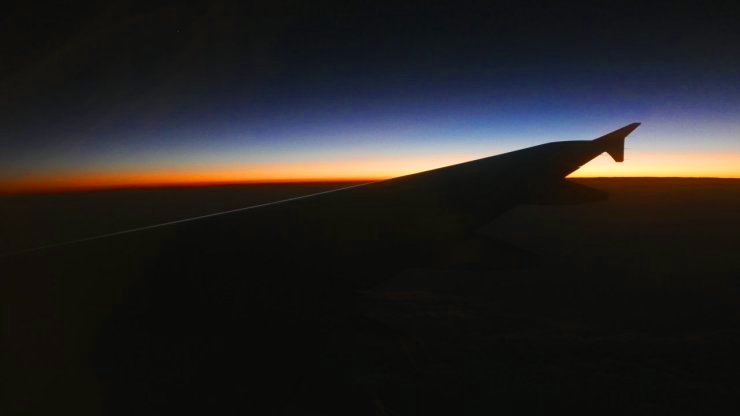 항공기 날개에 걸려있는 황혼