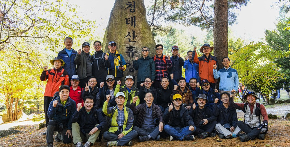 30여명의 입행동기들을 실은 관광버스는 8시 모행 본점을 출발해 경부와 영동고속도를 달려 두 시간 반 남짓 걸려 횡성에 도착해 휴양림 입구 표지석에서 기념사진을 담은 뒤 청태산 자락을 오른다. 청태산 기슭에는 자연휴양림이 조성돼있어 가을낭만에 파묻혀 계절을 음미해보기에 안성맞춤이었다.