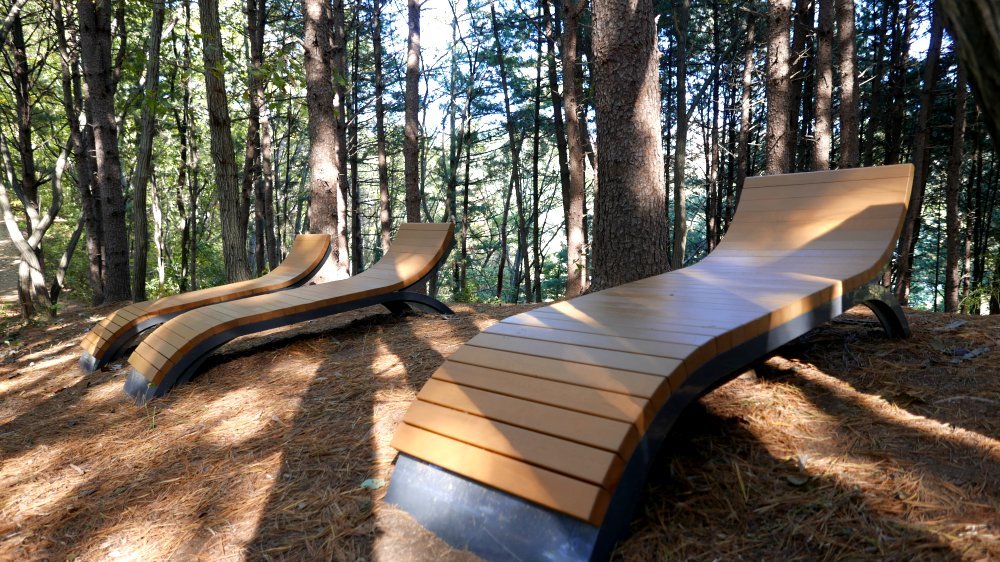 5코스 길을 절반정도 걷다보면 ⑥[가족 쉼터]인 정자가 있어 잠시 쉬어갈 수 있다. 가까이에 울창한 소나무 숲길인 ⑦[삼림욕장]이 있어 잠시 피톤치드를 호흡하며 삼림욕을 즐길 수 있고 길목에는 나무침대가 배치돼 있다.
