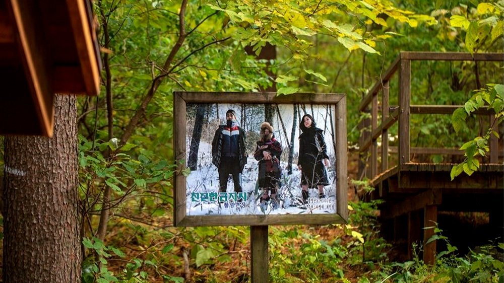 횡성의 볼거리로 손꼽히는 청태산 휴양림은 숲 사이를 편하게 걸을 수 있도록 입구부터 나무 데크가 지그재그로 깔려있어 편하게 삼림욕을 즐기며 산을 오른다. 전국의 자연휴양림은 각종 영화, 드라마와 CF촬영지가 많은데 청태산 휴양림도 조금 오르다 보면 이영애가 출연했던 “친절한 금자씨” 촬영지 표지판이 보인다.