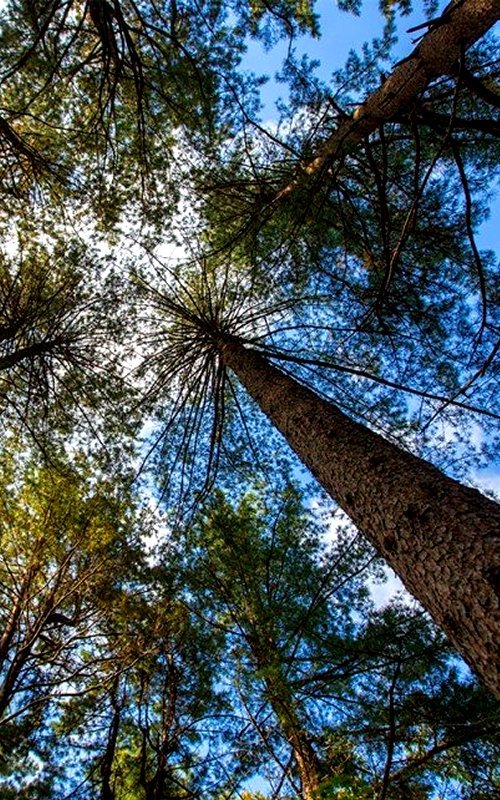 데크 길 옆으로 길게 뻗어있는 잣나무는 한 아름 둘레에 십여 미터 높이로 치솟아 파란 가을하늘이 보일 듯 말 듯 위용을 자랑하고 있는 듯 보인다. 가을이 찾아온 청태산 휴양림은 낮에도 파란하늘 대신 하늘을 가리고 있는 잣나무 숲으로 초록하늘을 띄고 있었다.