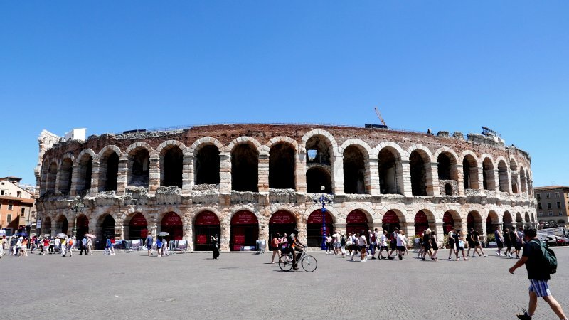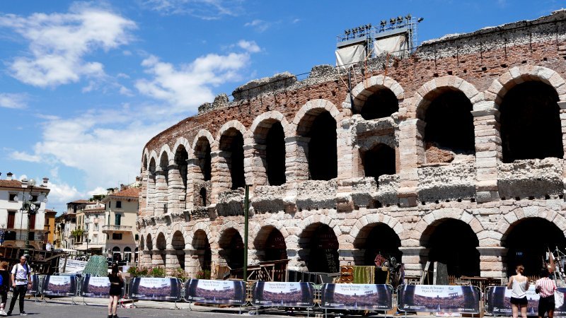 도시 한가운데에 위치한 [아레나 원형극장]은 [베로나]를 상징하는 유적지로 2세기 초인 30년경 [로마제국]에 의해 세워졌다. 아레나는 로마의 콜로세움과 나폴리 인근 카푸아(Capua) 경기장에 이어 3번째 큰 원형 경기장으로, 14세기 분수가 있는 구시가지 중심에 있다.