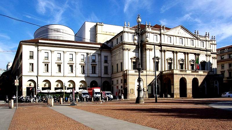 밀라노 중심지에 위치한 스칼라 극장은 세계적인 오페라 음악을 이끌었던 극장으로 1778년 성당이 있던 자리에 세워졌으며, 2차 세계대전 당시에 무너져 1946년 재건되었다. 이 건물을 지을 자리를 마련하기 위해 철거했던 [산타 마리아 스칼라 교회] 이름을 따서 [스칼라 극장]이라 불렀다고 한다.
