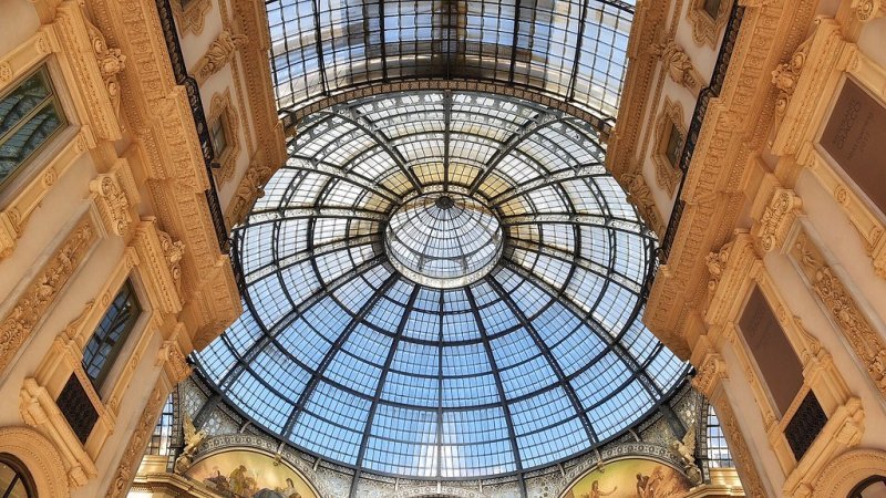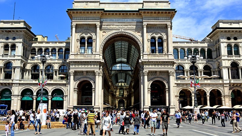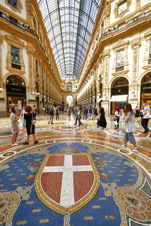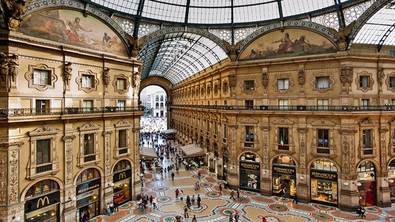 하나의 예술품인 듯한 쇼핑거리 갤러리아는 세계의 유행과 패션을 한 곳에 모아둔 명품 아케이드로 전 세계 많은 관광객들이 꼭 찾는 장소로 1877년 완공되었다. 1870년 로마를 병합함으로써 통일 이탈리아 최초로 국왕에 올랐던 빅토리오 엠마누엘레를 기리고자 그의 이름을 붙였다고 한다.