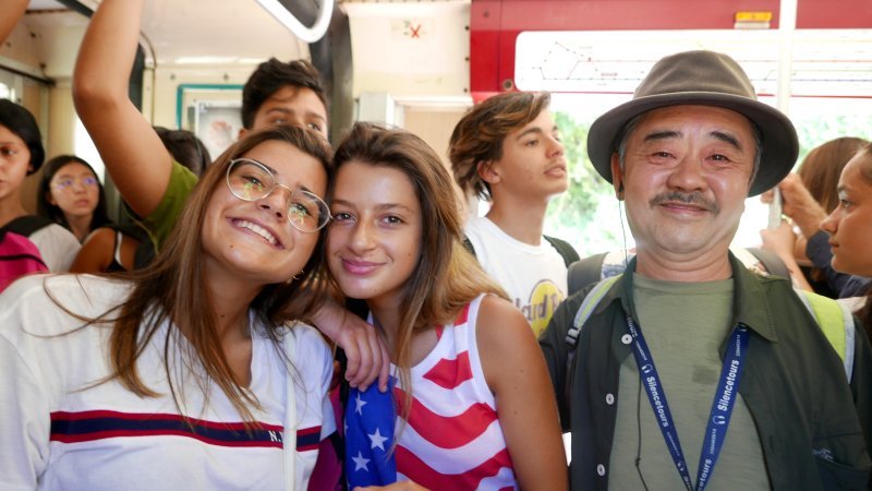 열차 노선도중간 역쯤에서 수업을 마친 십여 명의 남녀 학생들이 열차로 통학하는 듯 함께 몰려 타더니, 이내 열차 [이음 칸]이 시끄럽기 시작한다. 그중 옆에 있던 한 남학생은 내 모자와 시계에 시선을 고정시키더니 거침없이 말을 걸어온다.