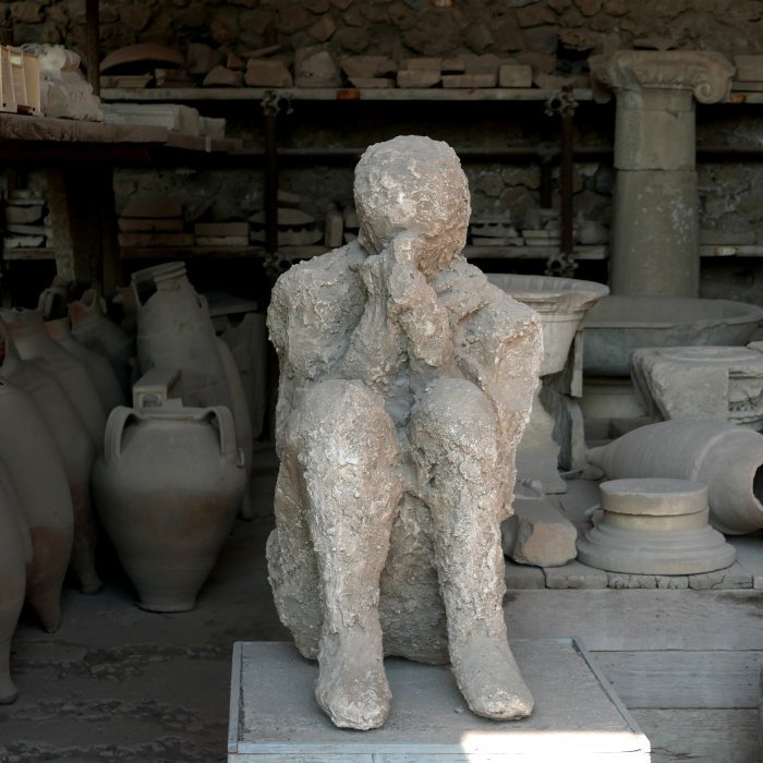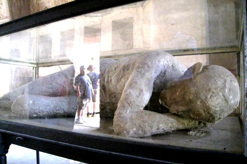 당시 비참한 주검으로 응고된 참상들이 그대로 전달되고 있는데, 용암의 불덩이와 화산재로 인한 질식 속에서 고통스럽게 죽어갔을 사람들을 생각하면 박제처럼 유리관 속에 진열된 형체(形體)들을 바라보는 것이 불편하기도 하다.