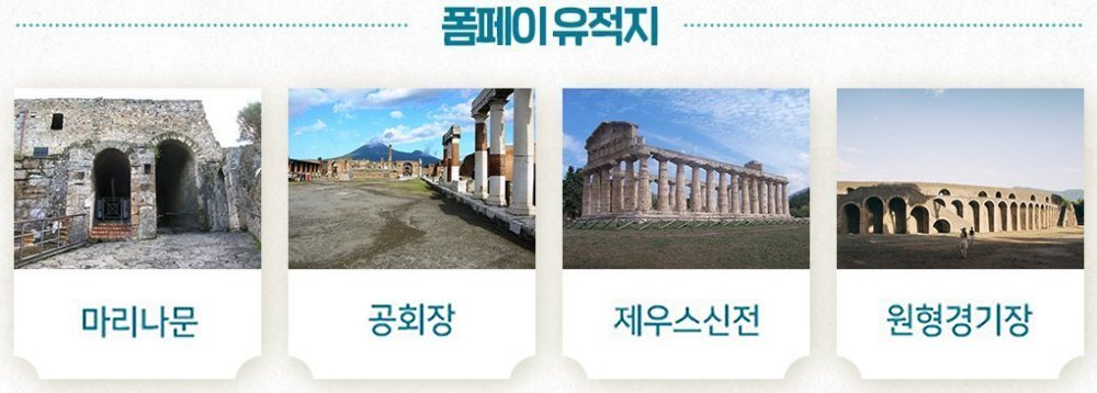 [나폴리] 남동부에 자리하고 있는 고대도시 폼페이는 영화 『폼페이 최후의 날』로 잘 알려진 곳이다. AD 79년 여름, 번영하던 로마제국 폼페이는 화산폭발로 도시전체와 수천 명의 주민이 화산재에 파묻히는 비극적인 운명을 맞이한 전설의 도시였다.