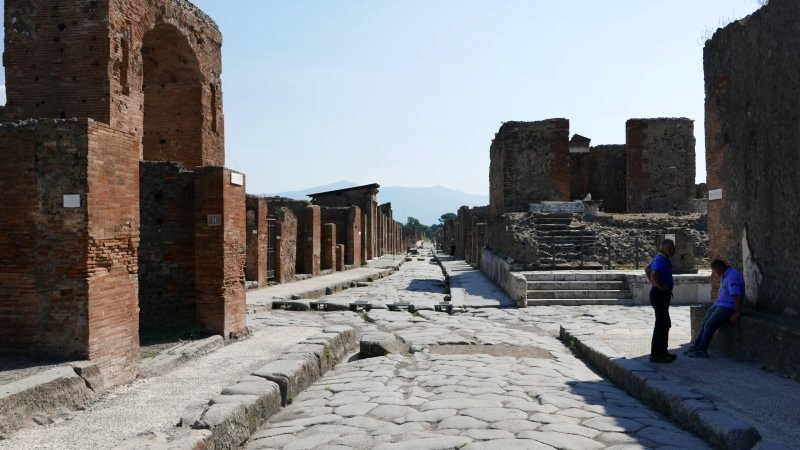 제우스 신전폼페이 중앙지역에 있는 제우스 신전(Temple of Zeus) 유적지와 폼페이에서 가장 큰 도로였다는 델라본단차(Dell'Abbondanza) 거리를 둘러본다. 여인숙과 술집이 들어서 있었다는 거리에는 상점과 주택이 합쳐진 집단 벽돌건물이 많이 들어서 있다.