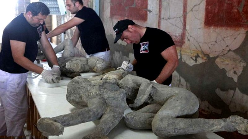 19세기 이탈리아가 통일되면서 폼페이의 모습이 확연히 드러나기 시작했다. 발굴단은 유적들이 쌓여있는 빈 공간에 석고를 부어넣어 당시 죽은 사람들의 형체가 드러나기도 했는데, 이때 드러난 유적들은 고대 로마의 생활상을 생생하게 재현하고 있다.